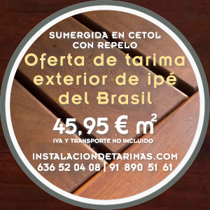 En este caso un rastrel tropical de madera de ipé del Brasil que viene cepillado y biselado. Conviene aclarar que la misma madera que se ha fabricado para un uso en estancias interiores (cubiertas y con calefacción) no se pueden emplear en el exterior. Hay una diferencia entre tarima interior y exterior, que se refleja en el mecanizado y en el secado de la madera, que es diferente.