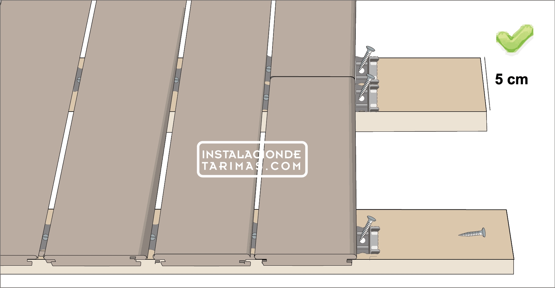 - No alinear bien las puntas (testas) de la tarima cuando se unen a lo largo en una fila.