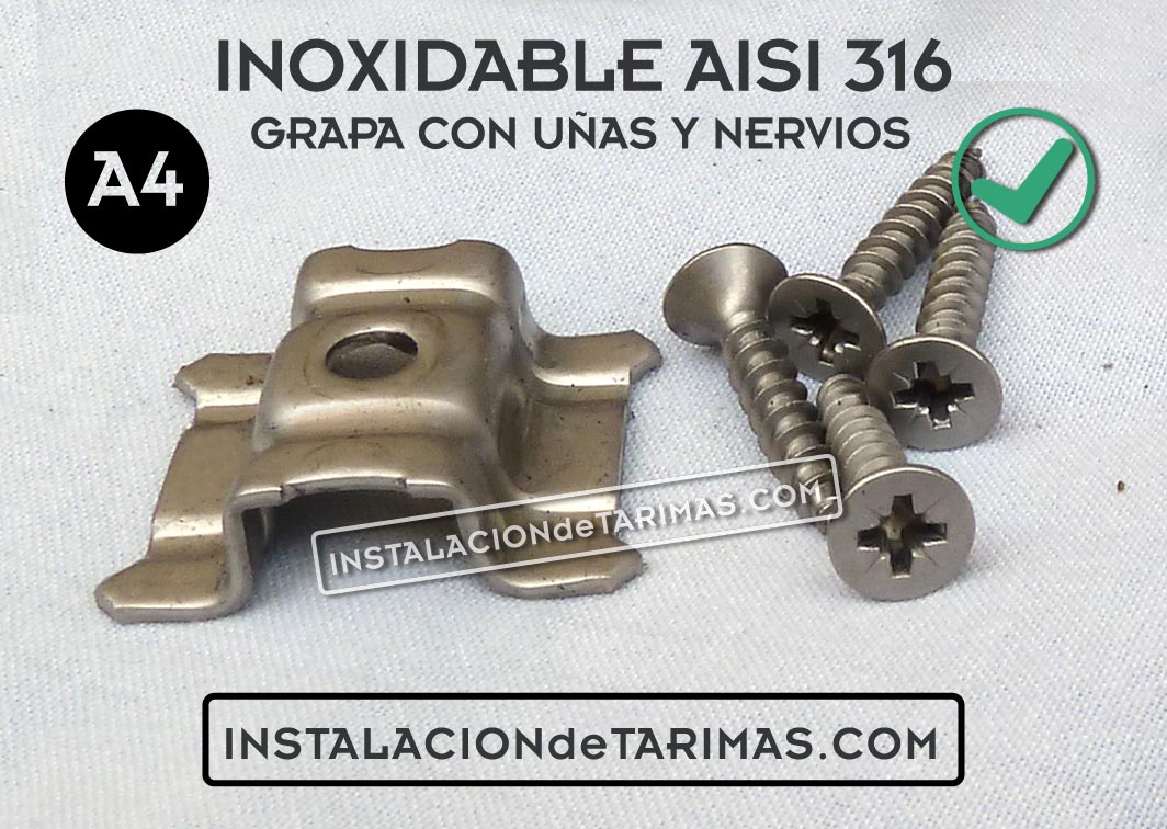 Las grapas y los tornillos deben ser de acero inoxidable A4 (AISI 316)