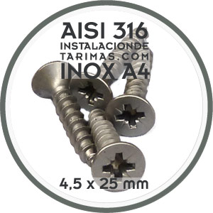 El diámetro del tornillo de acero inoxidable A4 (AISI 316) no puede ser inferior a 45 mm