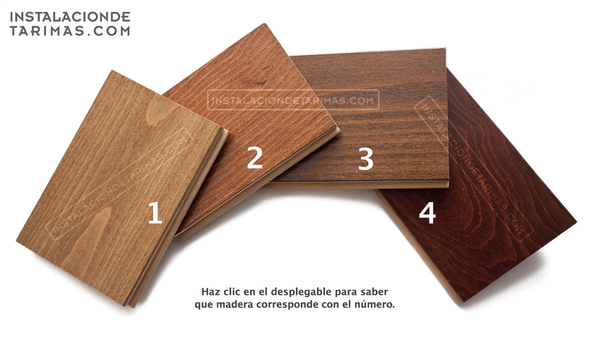 • Número 1: Madera de roble teñida con color similar al cumarú amarillo o al ipé.