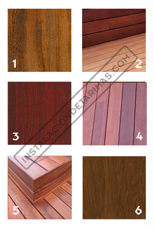 • Número 1: Madera tropical de ipé del brasil. Ipé virando a un rojo similar al merbau. Un rojo recesivo.